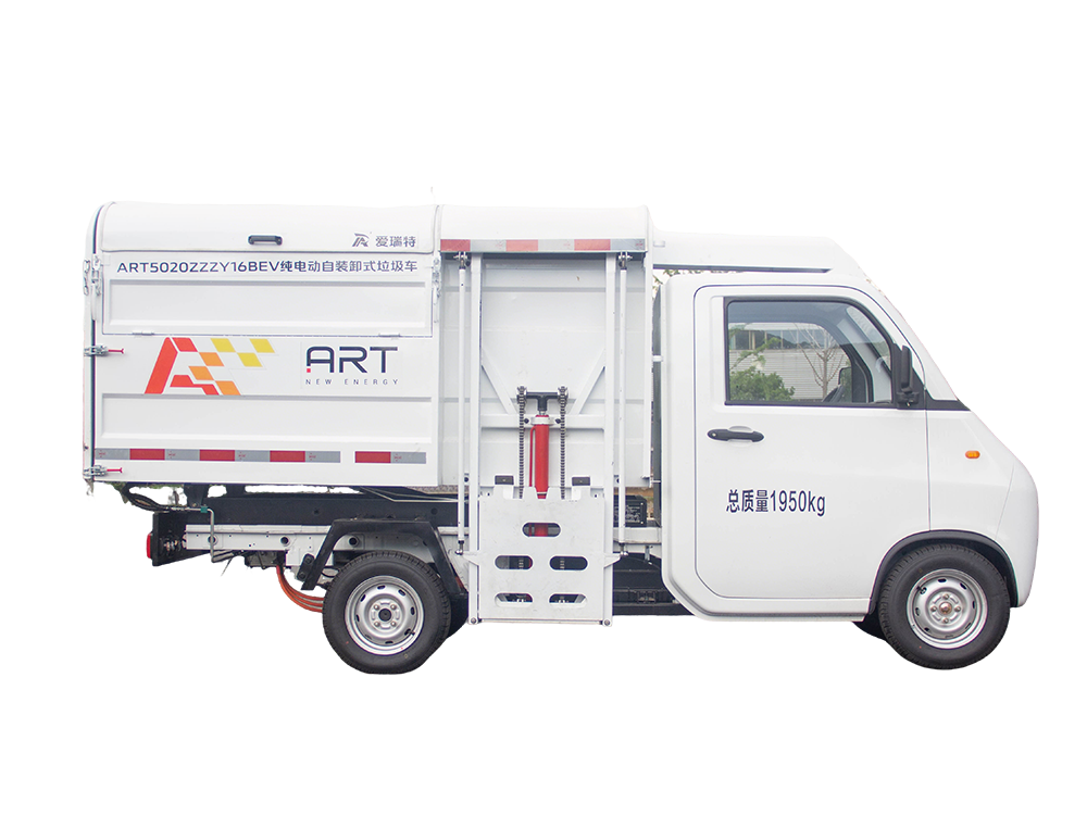 ART5020ZZZY16BEV純電動自裝卸式垃圾車主要用于于環衛、市政、廠礦企業、物業小區、垃圾多而集中的居民區、城市街道垃圾處理,具有密封自卸功能。